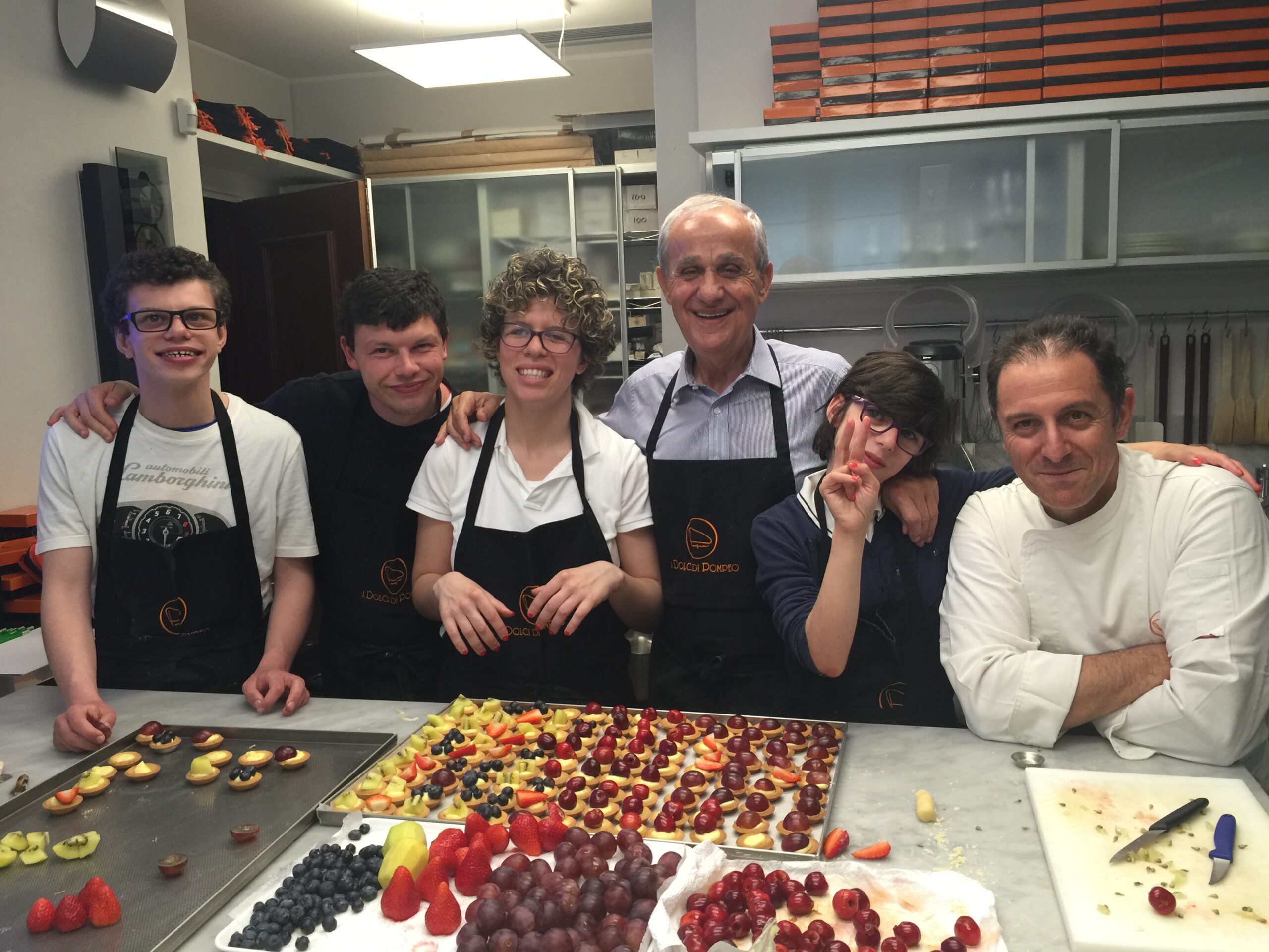 A scuola di… dolcezze. Ecco i piccoli amici di Pompeo Locatelli nel suo laboratorio di pasticceria. Tra impasti, pasta frolla e altri preziosi momenti. Per scoprire la magia di come nascono torte per simpatici “golosoni”. Grazie ragazzi della piacevolissima visita”. Alla prossima… infornata!